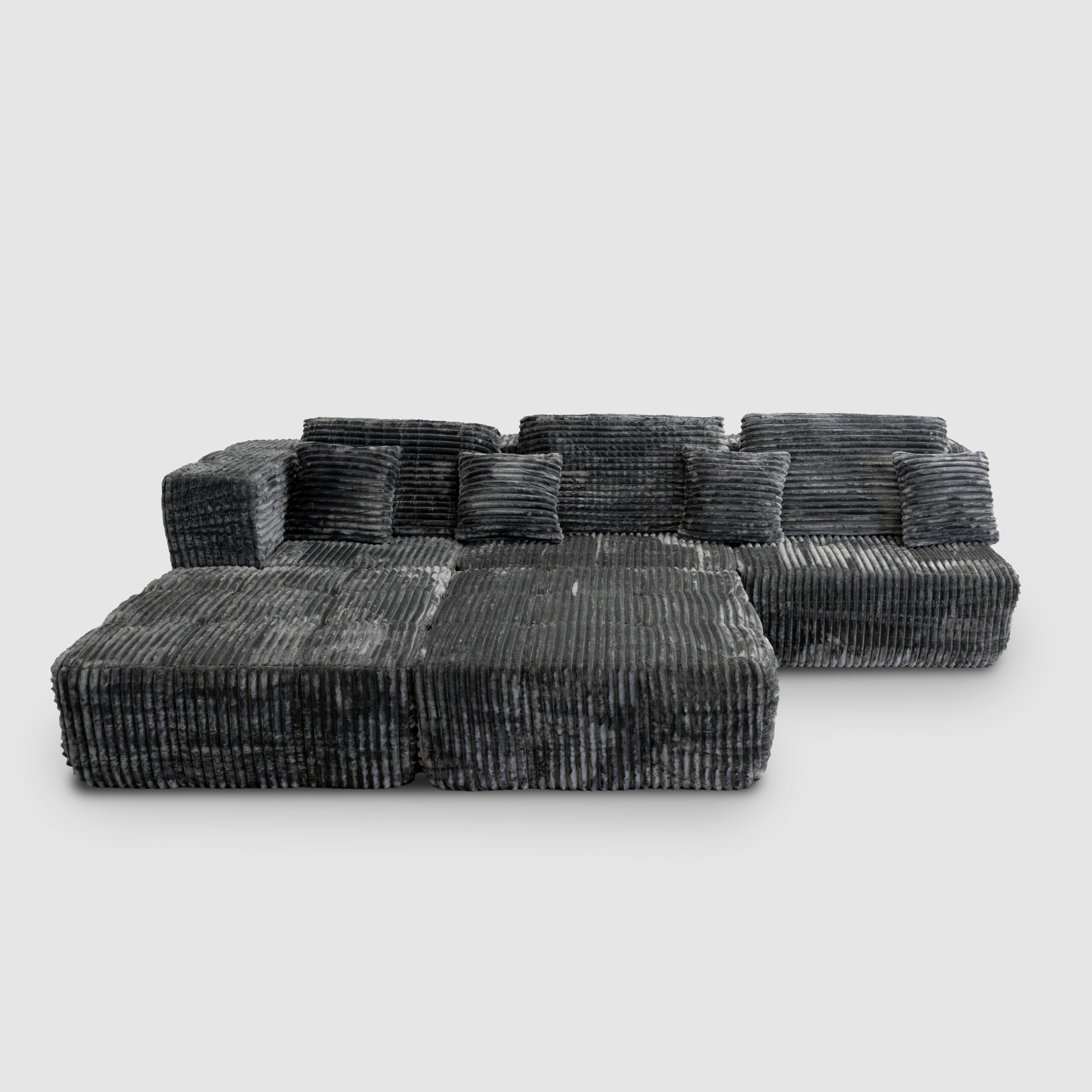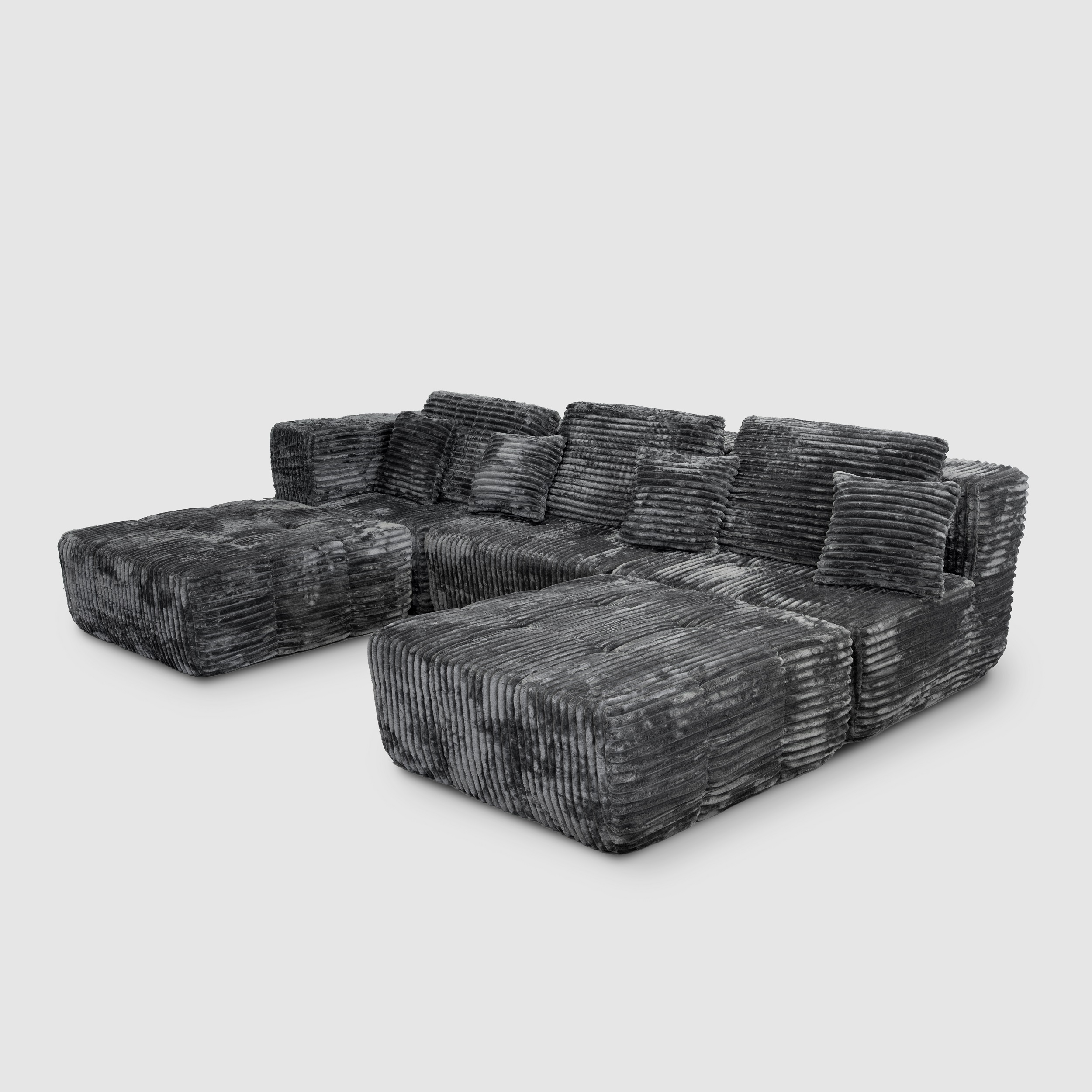 Fiind o canapea modulară, poți combina cele trei module + două otomane in diferite configurații astfel încât să obții o suprafață generoasă pentru odihnă, sau dimpotrivă dacă dorești poți să le separi amplasându-le în living acolo unde ai nevoie.